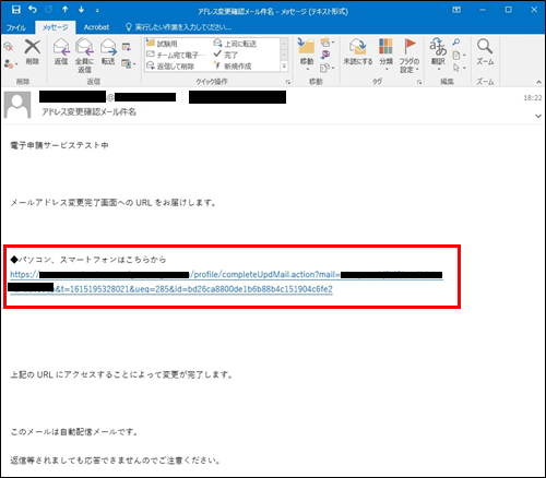 新しく登録されたメールアドレスへ、URLを記載したメールが送られます。
