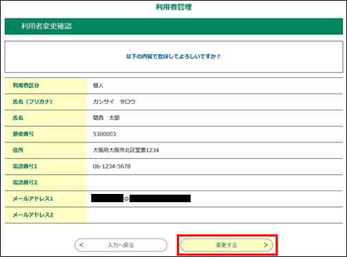 内容を確認し、 変更する をクリックしてください。
