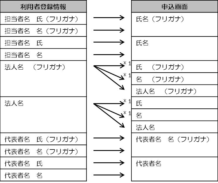 *1 法人名、法人名(フリガナ)については以下の規則に基づき氏、名、氏(フリガナ)、名(フリガナ)