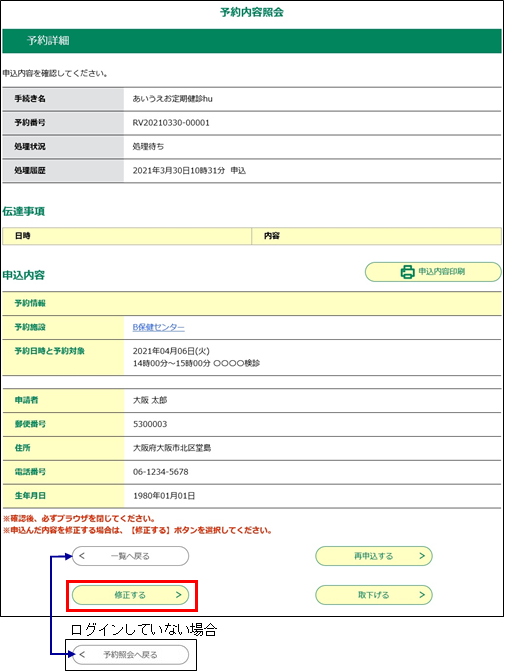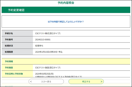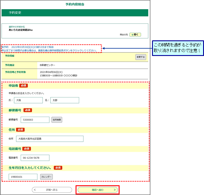 ※予約日時を変更した場合は、仮予約の有効時間までに修正を完了してください。