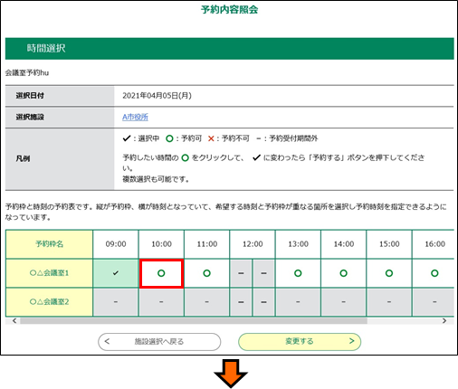 《予約変更画面》に戻ります。