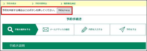 予約を中断する場合はこのボタンを押してください。予約をやめる」ボタンが表示されます。