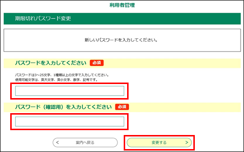 パスワードの有効期限が切れている場合は、《パスワード変更案内画面》が表示されます。
