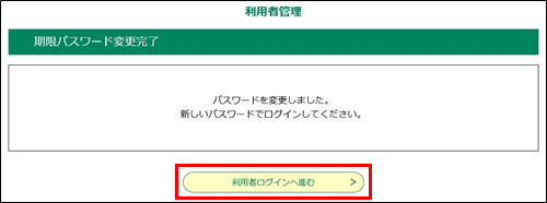 《期限パスワード変更完了画面》が表示されます。