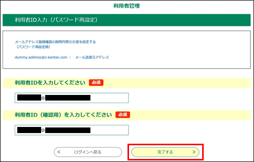 | 利用者ID(確認用) | 確認用に、上記の利用者IDを再度入力してください。 |