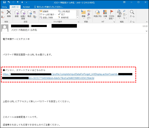 【パスワード再設定メール】の本文に記載されているURLをクリックしてください。